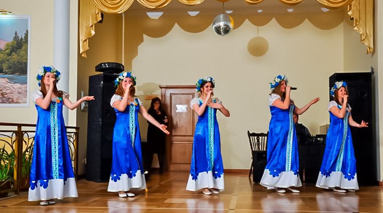 Очень большое внимание в здравнице уделяется вечернему досугу гостей. Увлекательные танцевально-развлекательные вечера отдыха создают особую атмосферу курортного настроения. Санаторий имеет собственный киноконцертный зал, оснащенный высококачественным мультимедийным оборудованием, где демонстрируются художественные фильмы и фильмы в формате 3D.